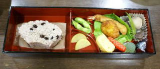 ![]() お斎(おとき)昼食にお出しした弁当。家族とお手伝いの人、檀家の娘さんが今日の為に作ったデザートが入った全部手作りです。 |